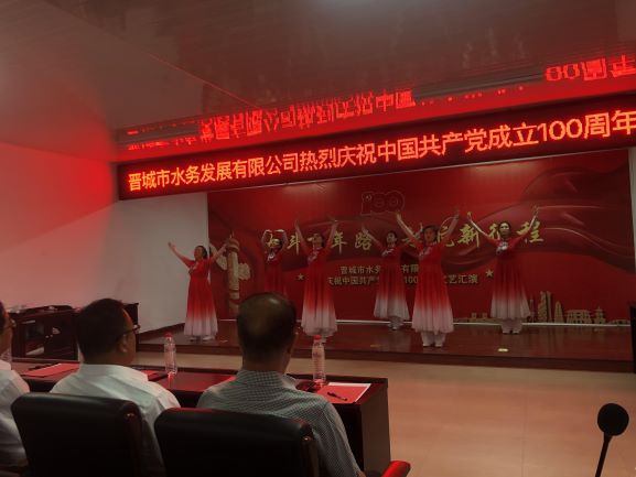 為慶祝中國(guó)共產(chǎn)黨成立100周年,緬懷革命先烈,謳歌黨的豐功偉績(jī),6月30日下午晉城市水務(wù)發(fā)展有限公司在一級(jí)泵站開(kāi)展慶祝建黨100周年文藝匯演活動(dòng)。演出在詩(shī)朗誦《夢(mèng)想藍(lán)圖 百年時(shí)光 永遠(yuǎn)跟黨走》中拉開(kāi)帷幕,舞蹈、三句半、小品和歌曲等輪番上陣。文藝表演期間穿插進(jìn)行了你比我猜小游戲和黨史知識(shí)競(jìng)賽環(huán)節(jié),本次黨史知識(shí)競(jìng)賽內(nèi)容豐富,題目緊緊圍繞中國(guó)共產(chǎn)主義的歷史、發(fā)展,黨章、十八大報(bào)告等方面展開(kāi),參賽選手積極應(yīng)答,氣氛緊張而熱烈,整個(gè)問(wèn)答環(huán)節(jié)不時(shí)博得大家陣陣掌聲。演出在全體職工的合唱《我們走在大路上》中結(jié)束,最后公司董事長(zhǎng)、黨支部書(shū)記潘軍同志進(jìn)行了講話(huà)。此次文藝匯演既豐富了職工的精神文化生活,又提升了大家愛(ài)國(guó)、愛(ài)黨的熱情;黨員群眾們歡聚一堂,共同為偉大的中國(guó)共產(chǎn)黨獻(xiàn)上最誠(chéng)摯的祝福。